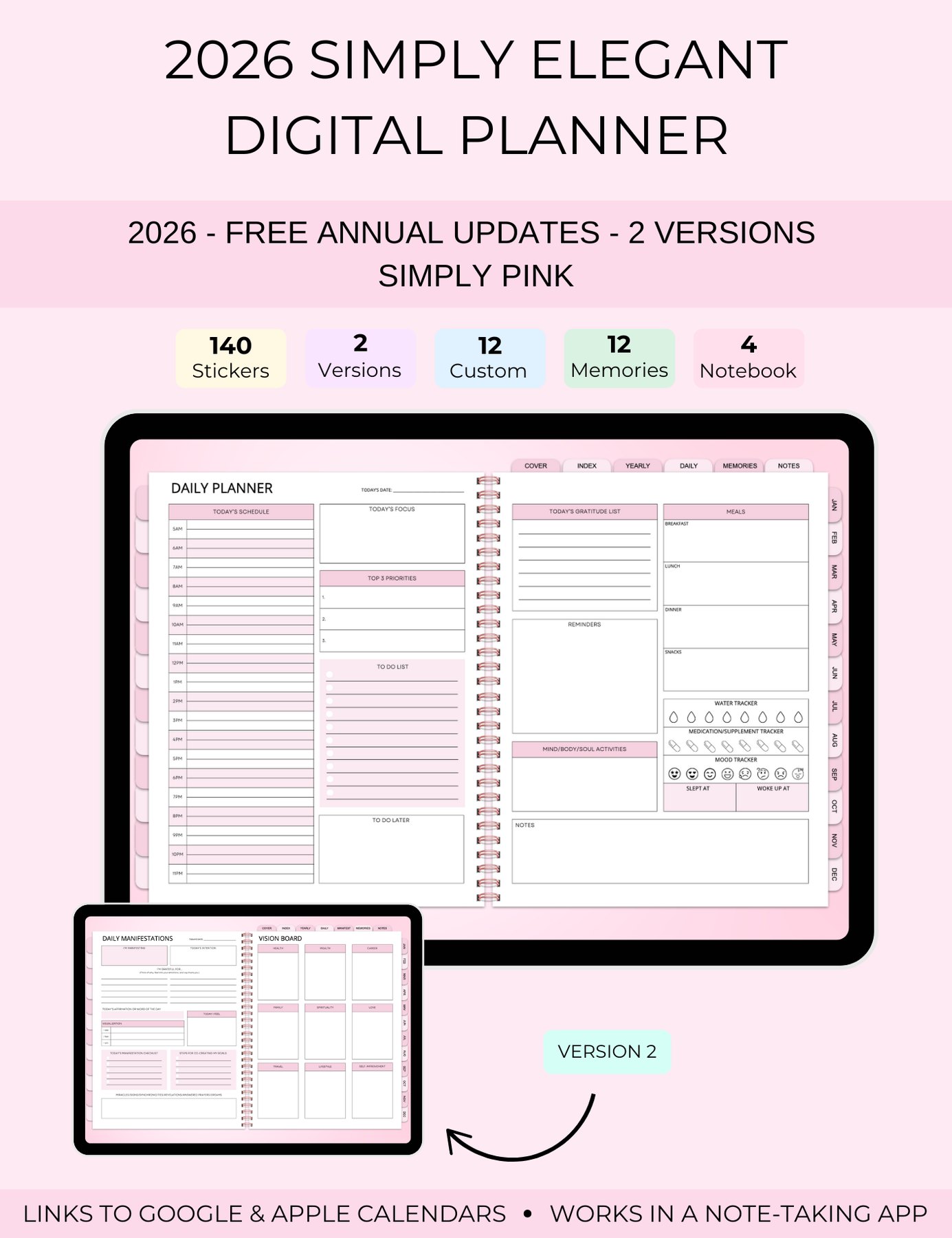 2026 Simply Elegant Digital Planner in Pink